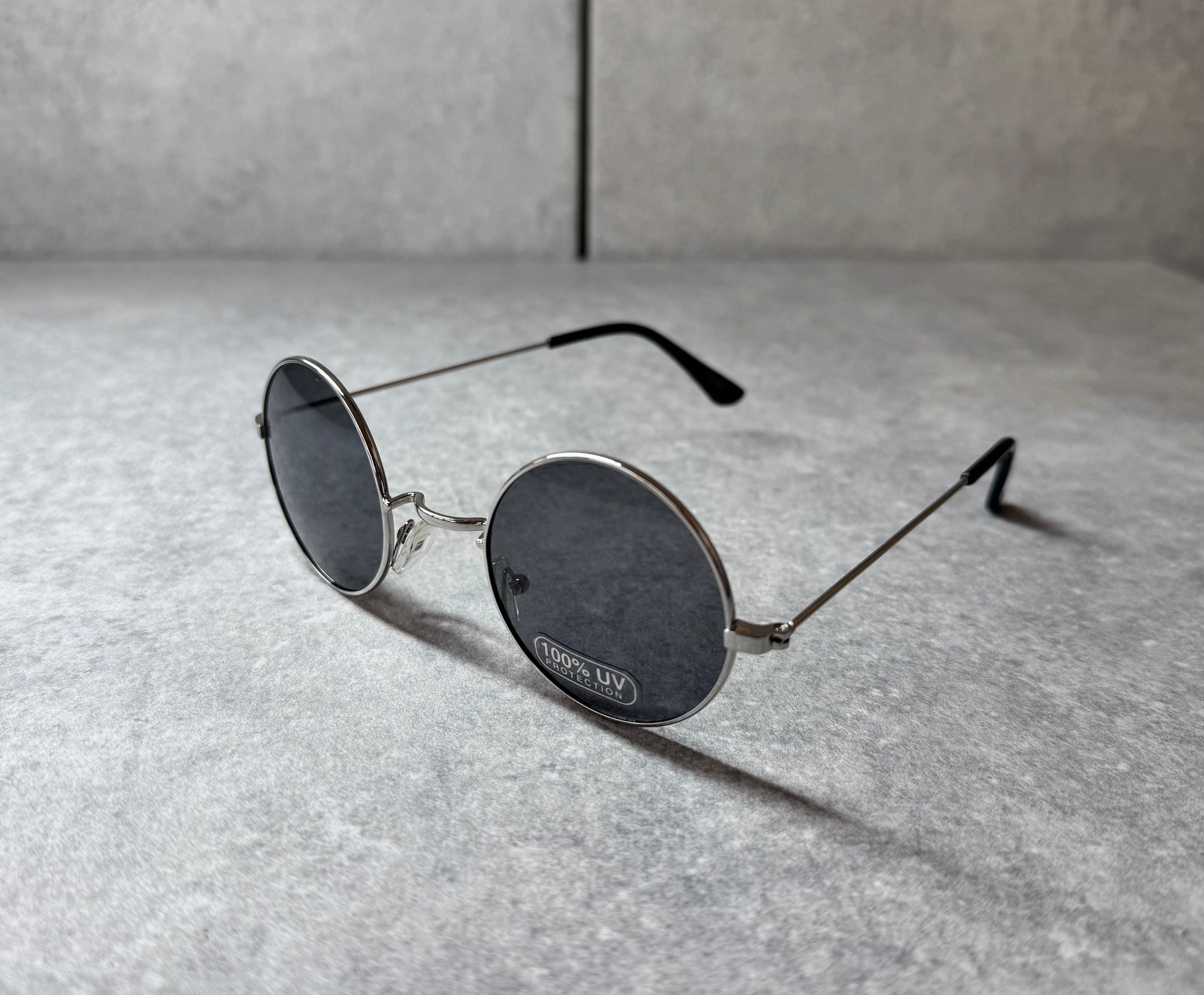 John Lennon Style. Silver and Round, 100% UV protection.